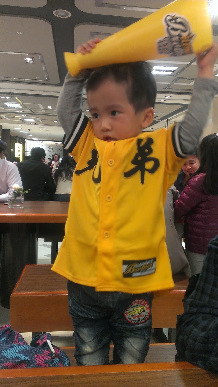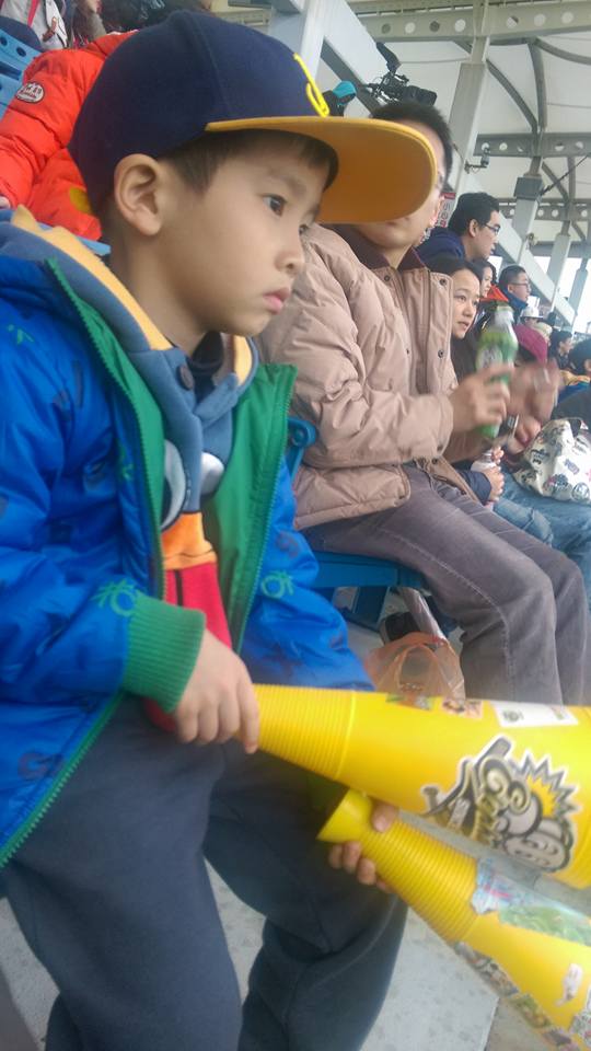 容易滿足的小孩一直說,今天真是太幸福了!我有看到棒球,有全壘打,還贏球了!